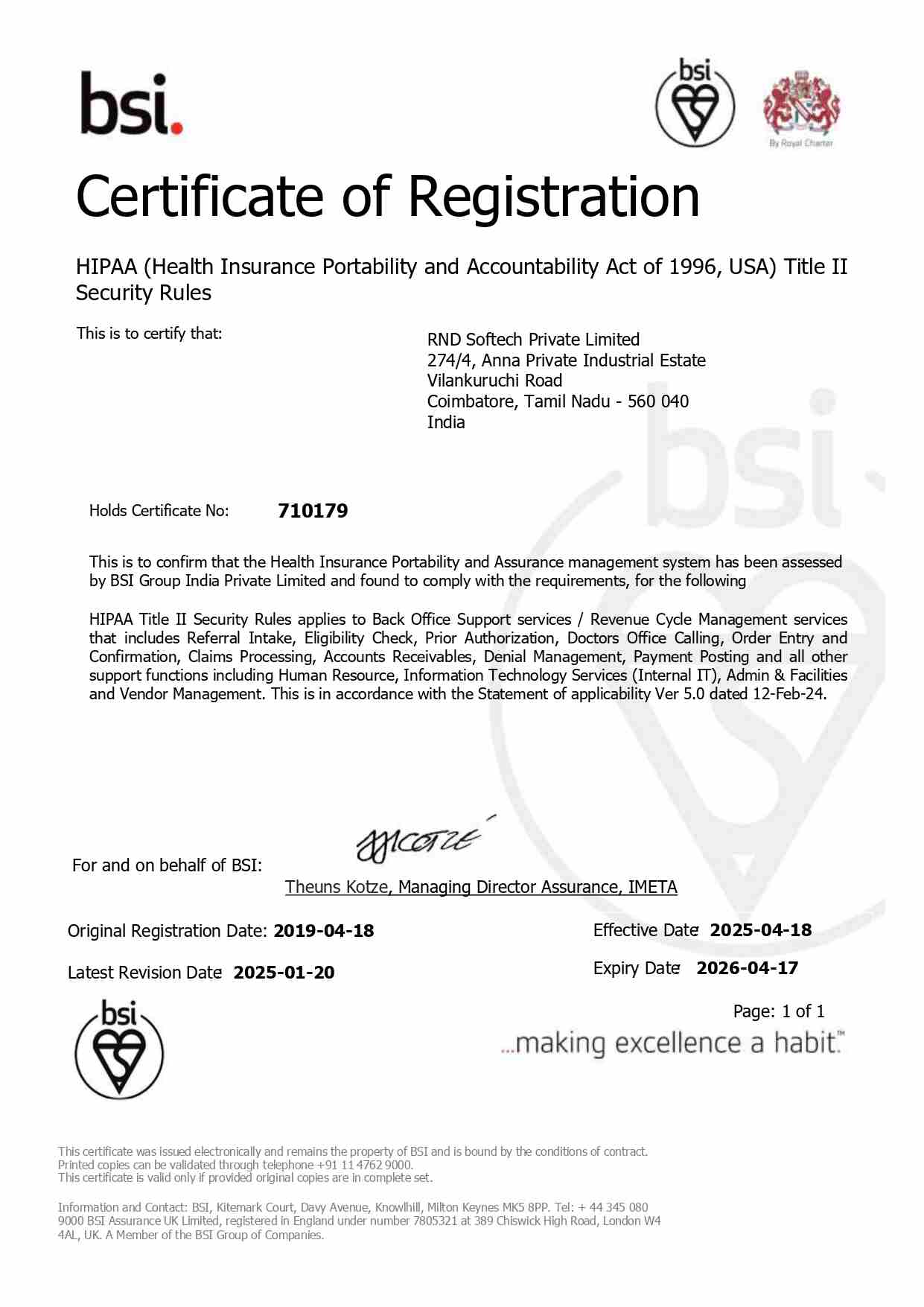 Hippa Certificate | RND Softech